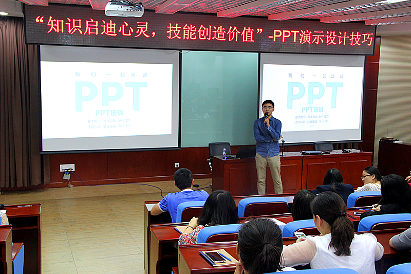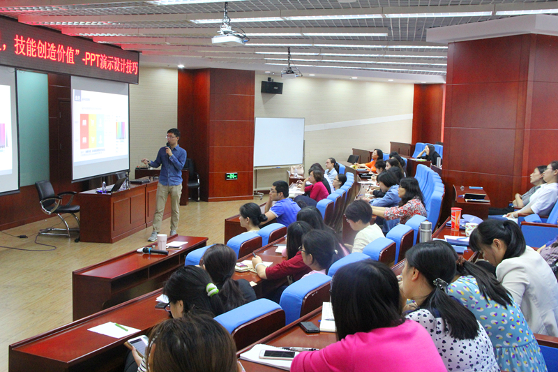 “继教之点亮心智, 乐享工作与生活”系列讲座第三讲开讲 2015-09-23 10:47:09lilan 学院新闻 9月22日下午,“继教之点亮心智,乐享工作与生活”系列讲座第三讲 “知识启迪心灵,技能创造价值”--PPT演示设计技巧讲座在世宁大厦219举办。此次讲座邀请到北京科技大学张成双老师为大家针对办公软件POWERPOINT(PPT)的应用技巧, 从“PPT是什么、PPT设计的原则、PPT实际制作技能、逻辑构思、专业数据图表以及PPT演示宣讲需要注意的事项”等几个方面进行了深度讲解,讲授风格生动、幽默,所讲授的PPT制作方法和技巧简单、实用,受到老师们的广泛好评。 “继教之点亮心智,乐享工作与生活”系列讲座是由学院工会主办的, 旨在工作日的八小时之内给学院员工搭建工作和生活上学习和思考的平台, 力求在学院内营造一种快乐工作,健康生活的良好氛围。本系列讲座从上学期起每月开办1-2讲,围绕日常办公与生活中大家比较感兴趣的内容, 精选主题, 聘请校内外的优秀老师主讲。 上一条:北航“继教之点亮心智, 乐享工作与生活”系列讲座 下一条:中捷高新区孙从起书记一行视察北航沧州教育园工作进展