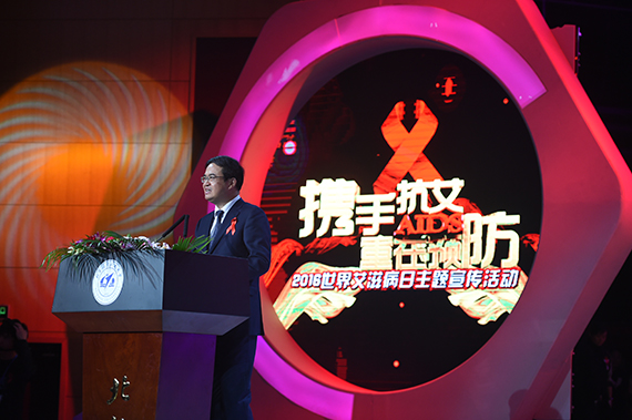 王国强在致辞中表示,我国艾滋病防治工作取得了显著成效,基本阻断了经输血传播,有效控制了经注射吸毒和母婴传播,病死率明显降低,整体疫情控制在低流行水平。青年学生既是受艾滋病威胁的重点人群,也是预防艾滋病的生力军,希望全社会行动起来,让艾滋病远离大学生、远离青年,远离人类!