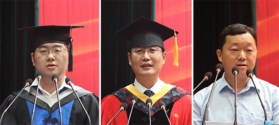 毕业生代表刘锦鹏、教师代表刘建伟、校友代表刘文恭分别发言 记者 孔祥明/摄影