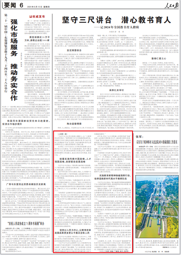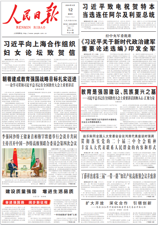 《人民日报》2024年9月12日头版(本报记者吴丹、黄超、丁雅诵、吴月、闫伊乔)报道: