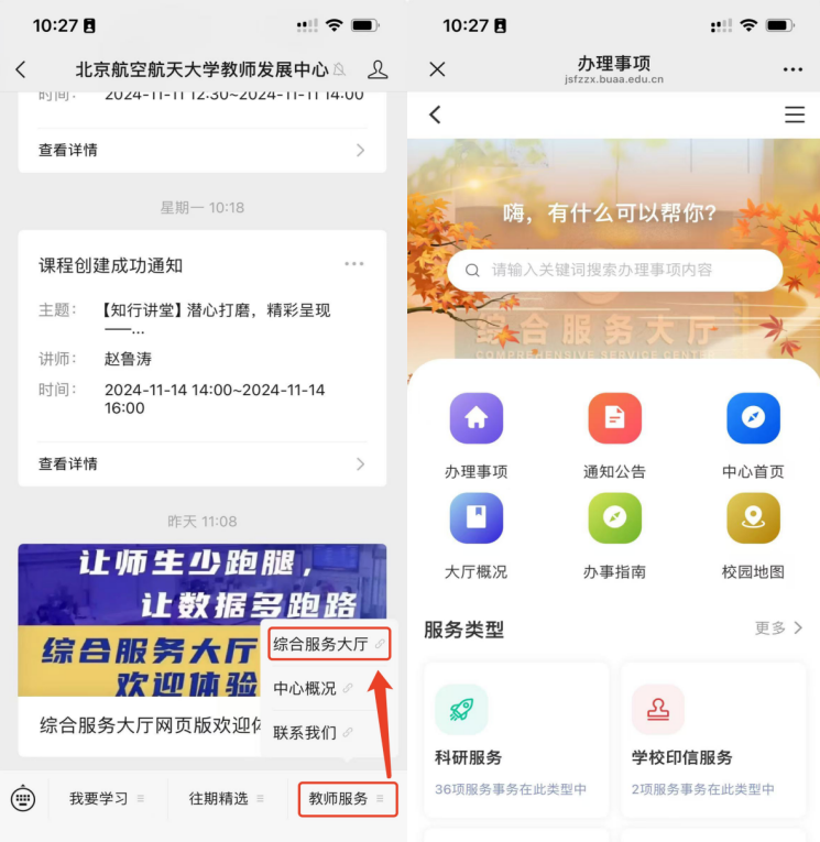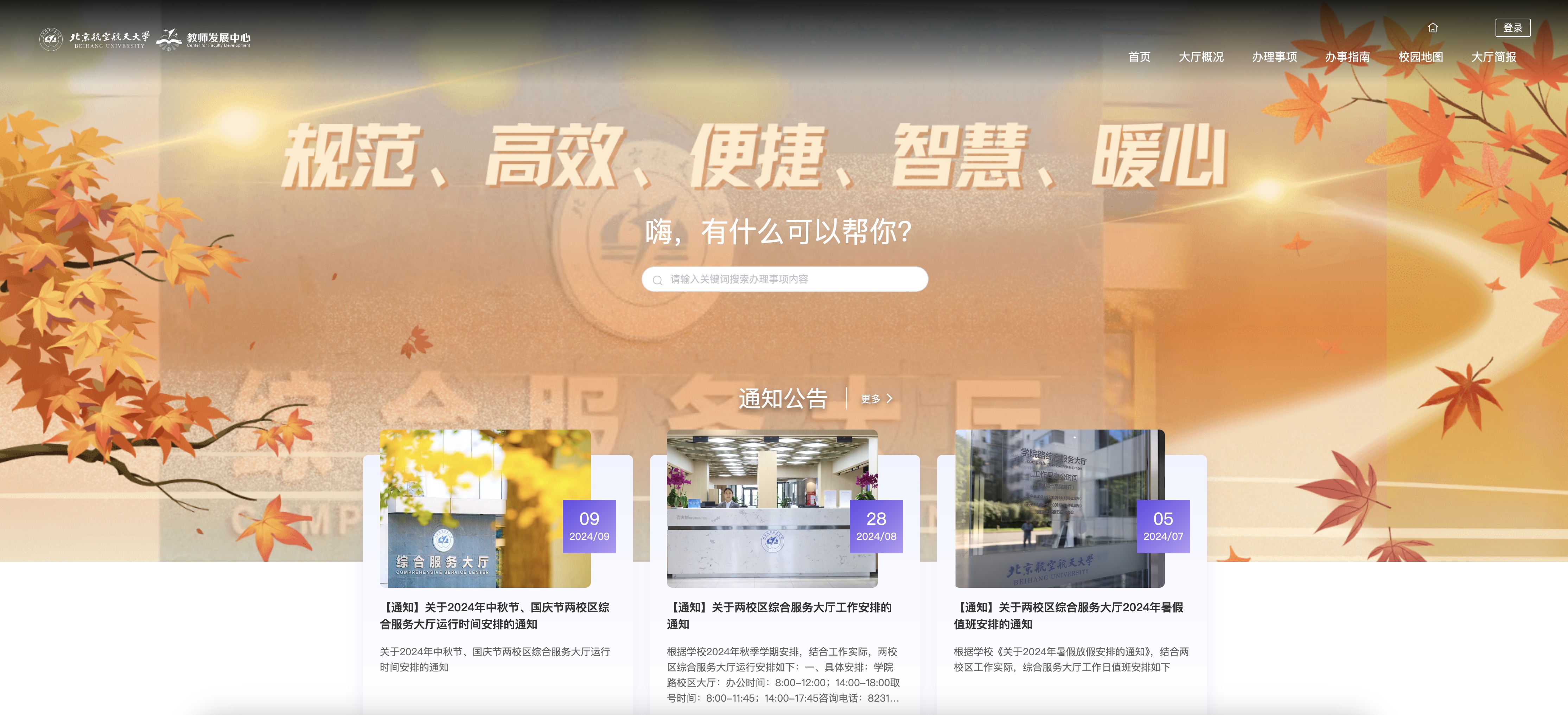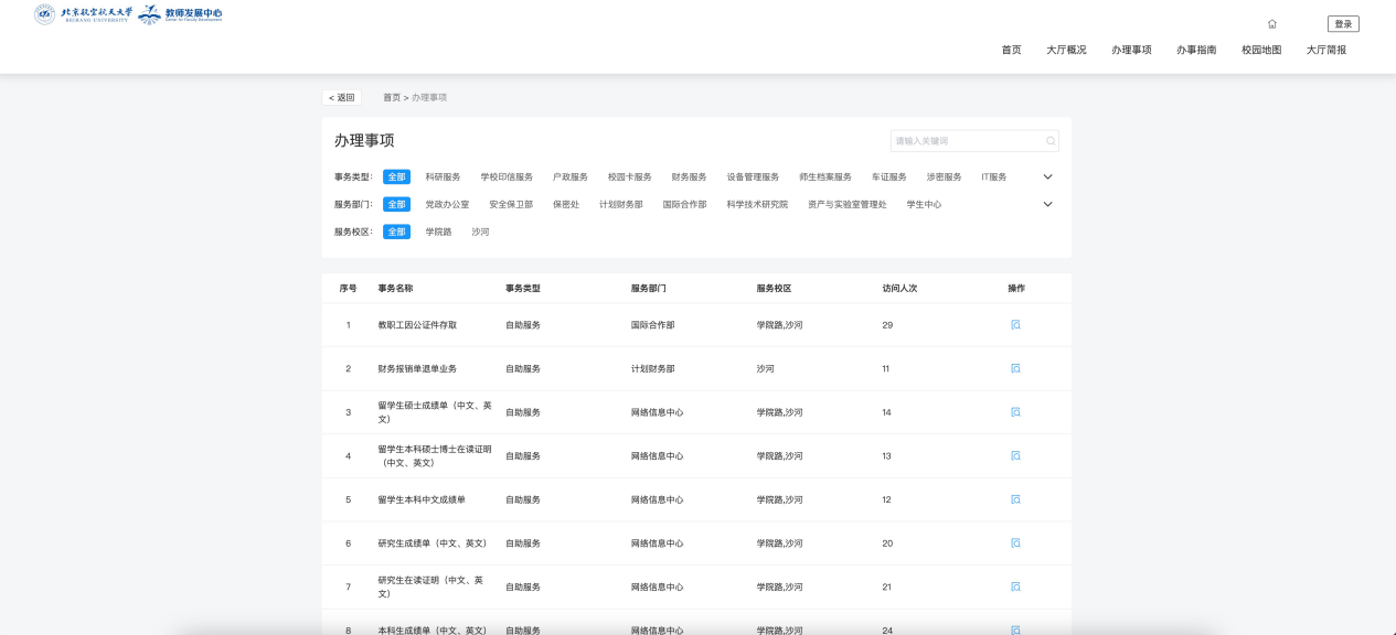 北航新闻网11月20日电(通讯员 朱蕊寒)近日,我校两校区综合服务大厅办事平台正式投入使用。该平台集成了两校区11家大厅进驻单位的共计161项办事事项,其中窗口服务144项,自助服务17项,全面覆盖了师生日常在大厅的办事需求,并对办事指南、工作指引以及申请材料等内容进行了进一步优化。