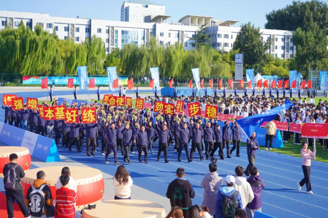 咬紧牙关,坚毅的眼神只投向终点;血脉偾张,结实的肌肉迸发出无尽的力量。奔跑、跳跃、欢呼!汗水闪耀,笑容绽放,赛场上运动员身手尽显,看台上观众们掌声不绝。发令枪响过后,数位运动员冲出起跑线,100米决赛现场热血沸腾;“加油,加油!”的呐喊声中,跳高运动员的身姿在空中划出优美的曲线,女子跳高决赛现场激情澎湃;人潮涌动处,队员们正配合着彼此的节奏,默契地一次次跳过大绳,趣味项目如火如荼。秋日晴空高朗,气候凉爽宜人,广大师生们在各体育场地驰骋赛场、挥洒豪迈,赛出高度、赛出激情。