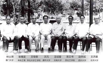 1958年,林士谔先生与苏联专家(左5为林士谔)