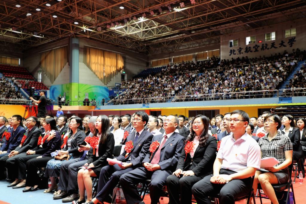 北航新闻网6月29日电(记者 孙也程 宋超韩思愉 孙赫 王震)6月29日下午,我校纪念中国共产党成立97周年暨表彰大会在体育馆隆重召开。全体在校校领导,党群部门负责人、各分党委(党总支、直属党支部)书记,全校党支部书记,学生辅导员,受表彰的先进基层党组织代表、优秀共产党员和优秀党务工作者,教职工党员代表,学生党员代表,离退休党员代表等2600余人出席了大会。会议由党委副书记程基伟主持。