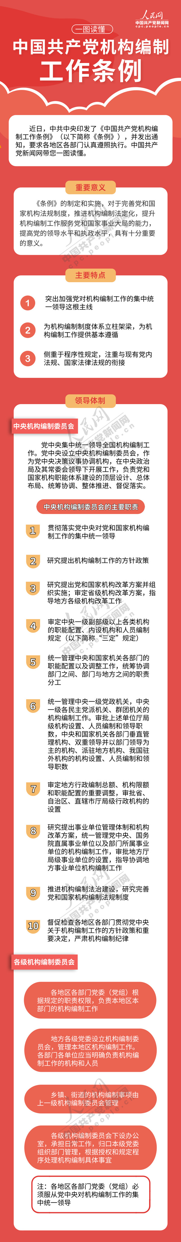 一图读懂,中国共产党机构编制工作条例 2019-08-30 09:40:27继教网站 党建与廉政 来源:人民网-中国共产党新闻网 上一条:我院组织开展九月“学习日”活动 下一条:图解党建-对照党章党规找差距!主题教育重点查摆这些问题